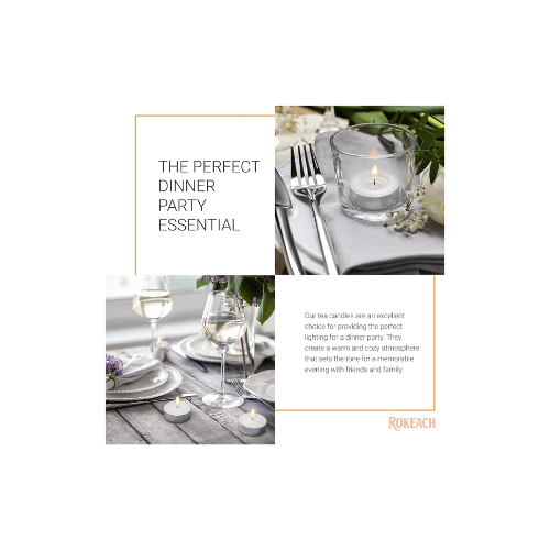 Rokeach Tea Lights (100 count) offer a clean, steady flame ideal for home use, events, holidays, and emergency lighting. Each candle comes in a sturdy aluminum cup for neat and convenient burning, making them perfect for décor, rituals, or everyday ambiance.