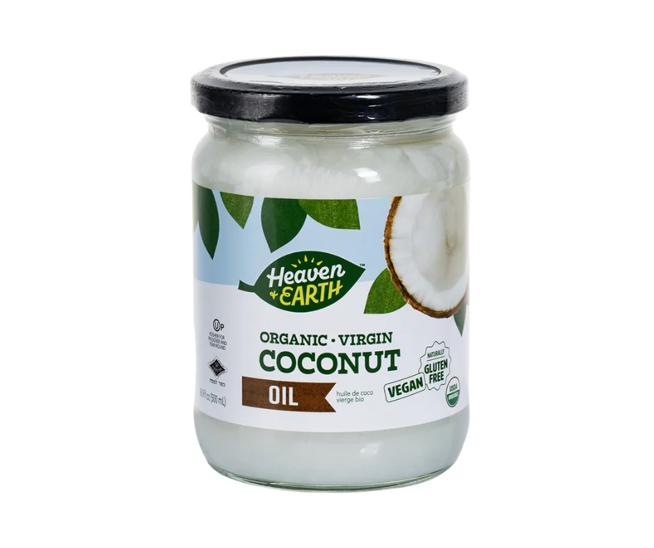 Heaven & Earth Organic Coconut Oil is cold-pressed and unrefined, retaining its natural aroma, flavor, and nutrients. Perfect for cooking, baking, and skincare, this versatile oil is rich in healthy fats and free from additives. USDA Organic and Kosher certified.